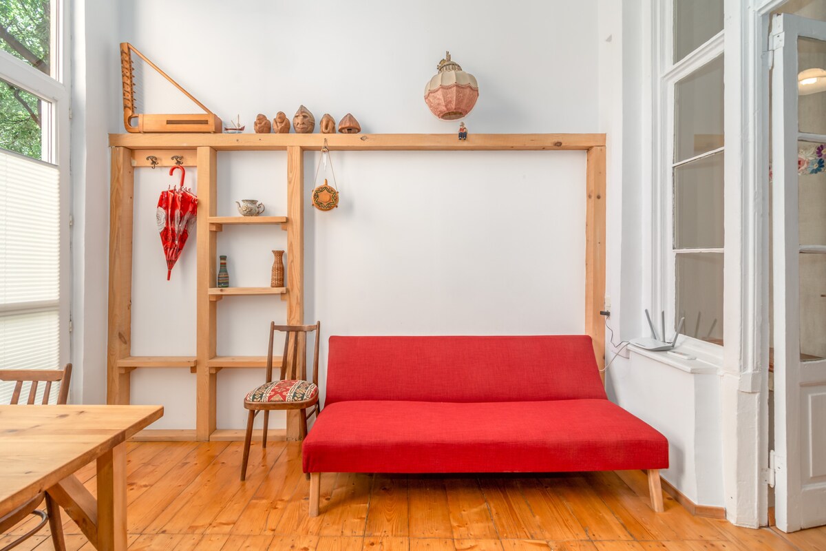 Enjoy your stay in the hottest spot of Tbilisi, surrounded with 5 star hotels: Biltmore, Radisson, Stamba and Rooms and just steps away from Rustaveli metro station and all the main attractions. You will be staying in the vintage loft, located on the top floor of a 1930s stone-built building, with a private terrace and beautiful views. Floor to ceiling windows provide plenty of sunshine, natural light and beautiful views from every room, but there are also heavy curtains for daytime dreamers:)