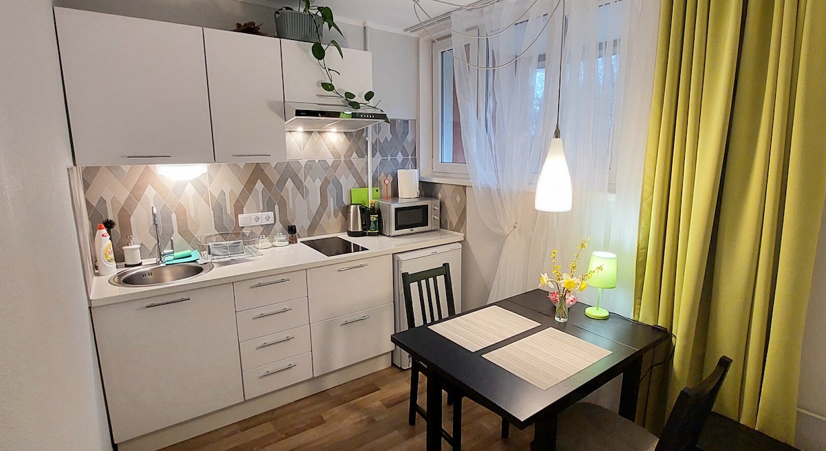 Relax with the whole family at this peaceful place to stay. This studio tipe apartment has everything to make you feel at home. • Good location. 1,6 km from the centra, 3,4 km from central beach, 950 m from bus station, 900 m from LOC Olympic Center. • All necessary amenities such as free WIFI, TV, well-equipped kitchen, washing machine with dryer (2in1) and hair dryer. • Separate entrance. Less is MORE! Guest access Self check-in instructions will be sent to you on the day of arrival.