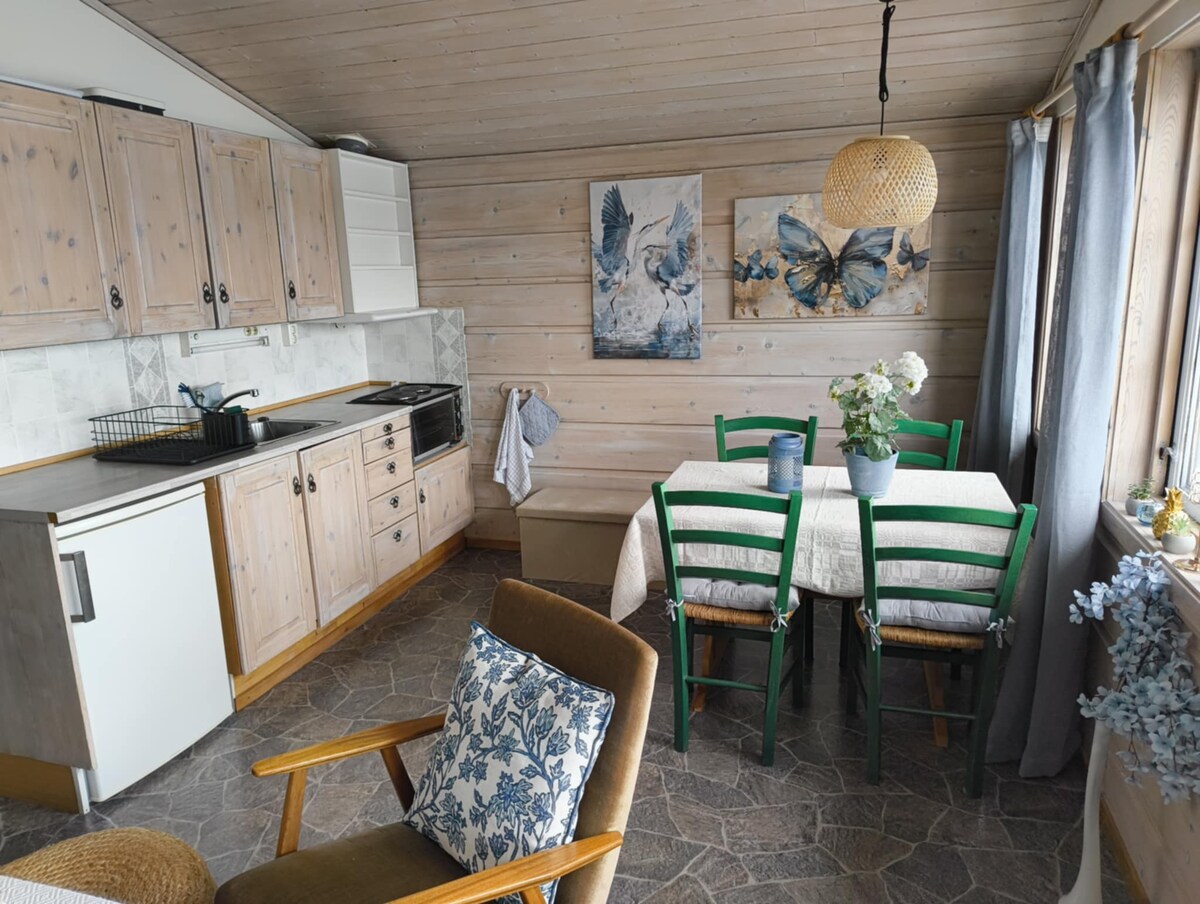 A stylish, romantic and cozy little mini house with a magical view of the fjord and the garden below. Here you can enjoy coffee on the terrace at sunrise and splash your toes in the sea in a beautiful sunset from the jetty. We can offer SUP boards, sauna and kayak rental. Then everything will be available from the jetty, so you can just enjoy the holiday Here you can walk straight from the bed up to the most beautiful peaks and then go down again and take a swim in the sea.
