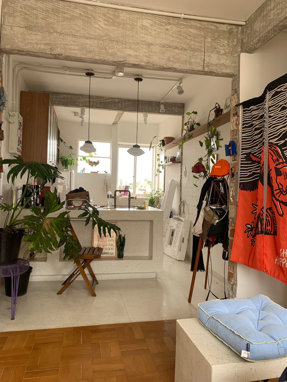 - O Loft oferece: localização, custo-benefício, atendimento e ambiente limpo; - Ideal p/ casais, pequenas famílias e grupos de amigos; - 3 camas, 1 de casal, 1 solteiro e 1 bicama (pedir a bicama na reserva), e sofá-cama; - No coração da cidade, em meio a restaurantes, praças, feiras, bancos, pontos turísticos, mercados e cafés; - Smart tv, 2 ventiladores, air fryer (pedir), sanduicheira, chaleira elétrica, liqui, ferro (pedir), secador/chapinha (pedir);