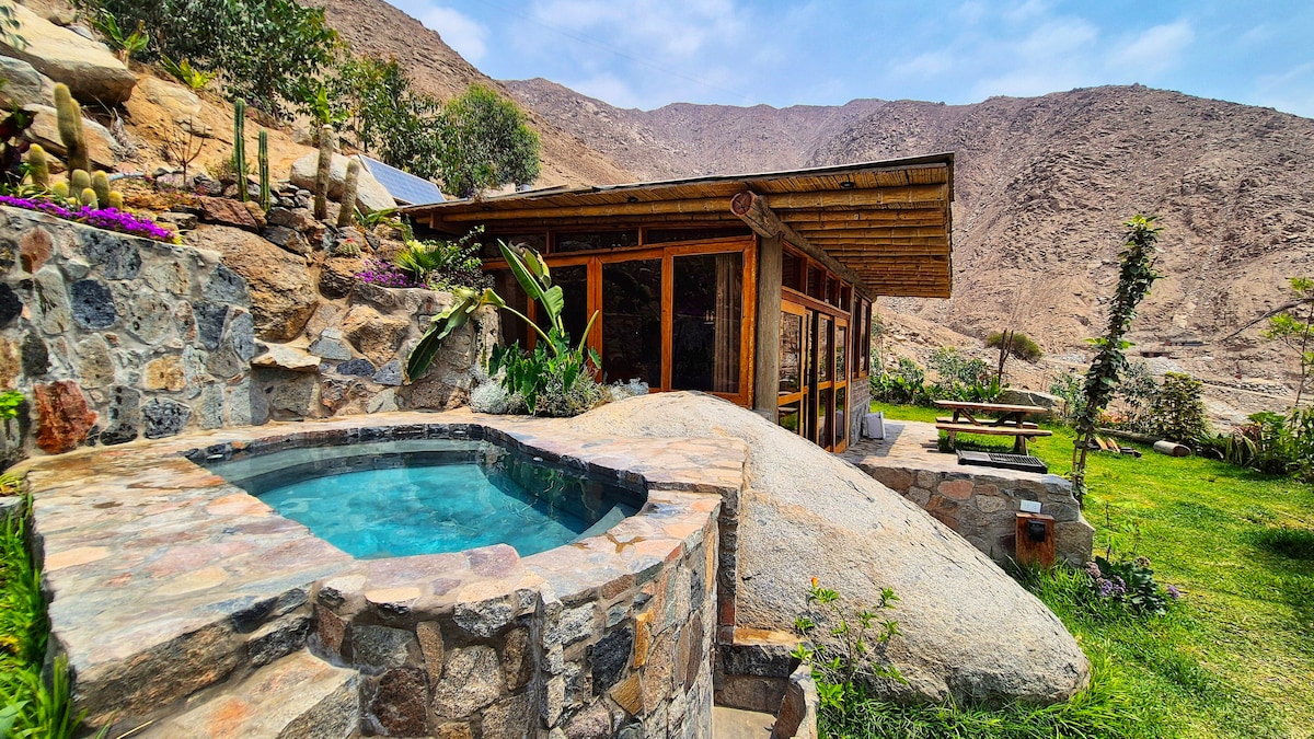 Un lugar especial, para gente especial. Ubicación privilegiada. Unas vistas espectaculares al valle, a las áridas montañas y al Camino Inca. Ruta que unía durante la época pre-colombina, Xauxa con Pachacamac. Nuestro lugar ofrece una experiencia diferente, y un contacto directo con el entorno. Desde que iniciamos la construcción de nuestras cabañas, el propósito fue estar en armonía con la naturaleza. Premios: Arquitectura y Construcción Sostenible. 2008 - PERÚ. 2016 - FRANCIA.