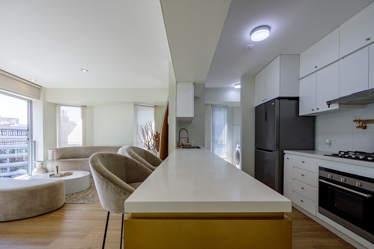Spacious and elegant apartment in the heart of Barranco. Prime location: Within walking distance of the main tourist attractions of Barranco and Miraflores, the best restaurants, bars and art galleries. Master bedroom: King-size bed and large walk-in closet. Open and bright space: Living room and kitchenette with natural light. Private garage: subject to availability Common areas: Gym, meeting room and children's play area. Minimalist style.