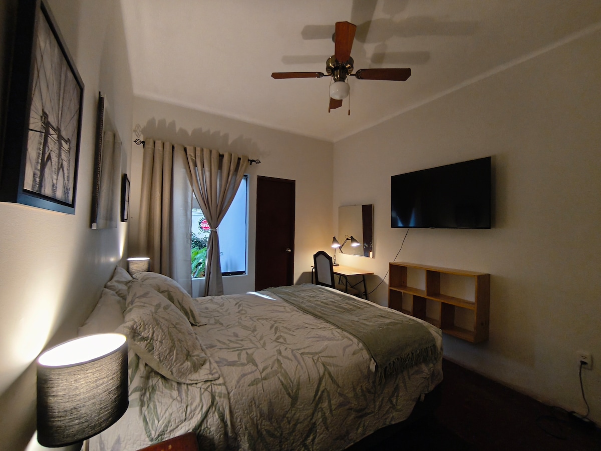 INDEPENDENT ENTRANCE/ CHECK IN - OUT FLEXIBLE : A ROOM + DESK + SHARED BATHROOM (with one guest) + PATIO and KITCHEN Displays of a minibar (in the kitchen), towels, equipped kitchen and laundry room. INCLUDES SELF SERVICE: Coffee, Tea, Filter Water. Super location, safe, quiet and beautiful tourist area, two blocks from the seafront and stairs to the beach. Nearby: bookstores, parks, cafes, restaurants, bars, supermarket, shopping and cultural center, Barranco and San Isidro
