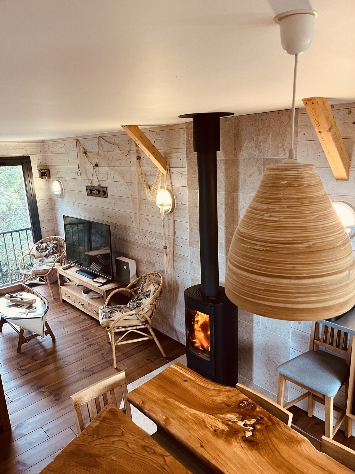 Un Noël en Famille au coin du Feu La cabane du château d’o vous invite à une escapade insolite dans un cadre boisé à 350 m de l’océan et des commerces. Elle vous offre un repos apaisé pour des vacances agréables avec un confort axé sur le bien-être. Une grande terrasse avec une vue panoramique sur la station balnéaire accueillera vos journées farniente. L’extérieur vous séduira par son jardin et son hamac. Le linge et le ménage en plus Arrivée 16 h ou autonome Départ 10 h 7 jours mini