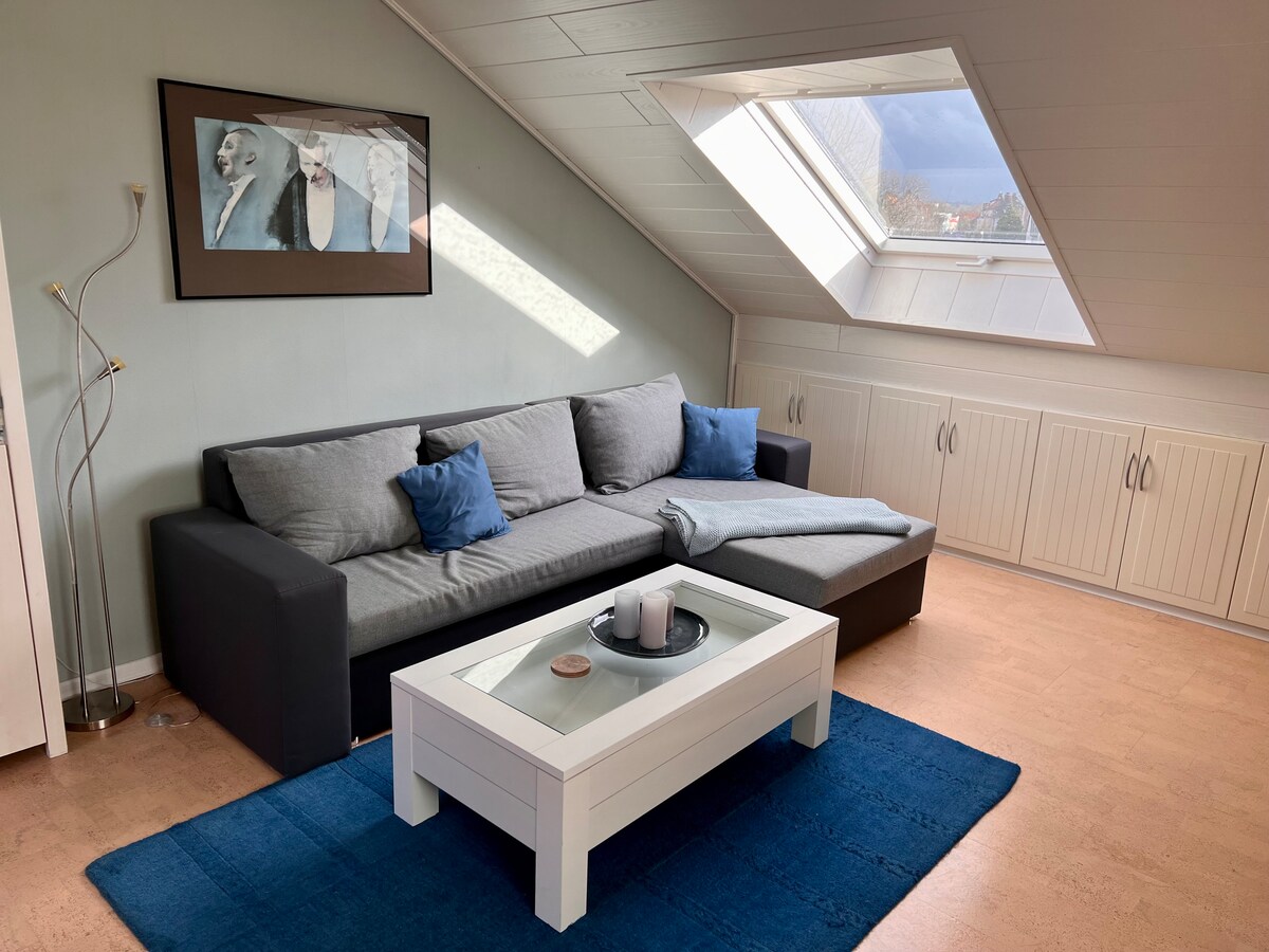 Our bright, open attic apartment offers a cozy place to stay in the heart of Soest. The city and the train station are within walking distance and a bus runs in front of the house every half hour. In addition to the numerous tourist attractions in Soest, the health resort of Bad Sassendorf with its thermal baths and the spa park can also be quickly reached from the property by bus or car. Parking is free of charge and a Lidl, Aldi, Edeka, Dm and organic market are within walking distance.