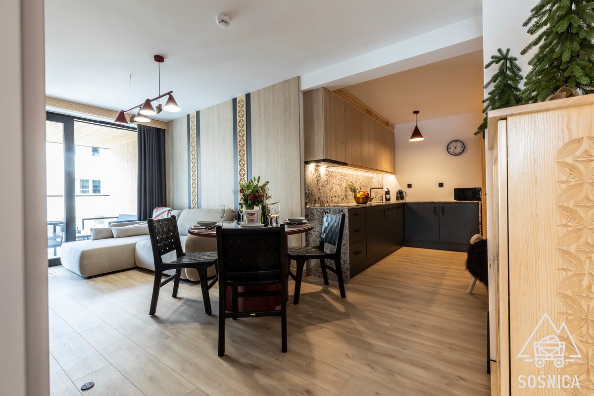 Luxurious interior, relaxation in the jacuzzi, recreation at the pool is guaranteed by the BIG BEN APARTMENT located in a quiet district of Zakopane on Jana Krzeptowskiego Street with views of the Tatra Mountains. It is an ideal place for people who like a higher standard and amenities such as a swimming pool, jacuzzi, sauna.