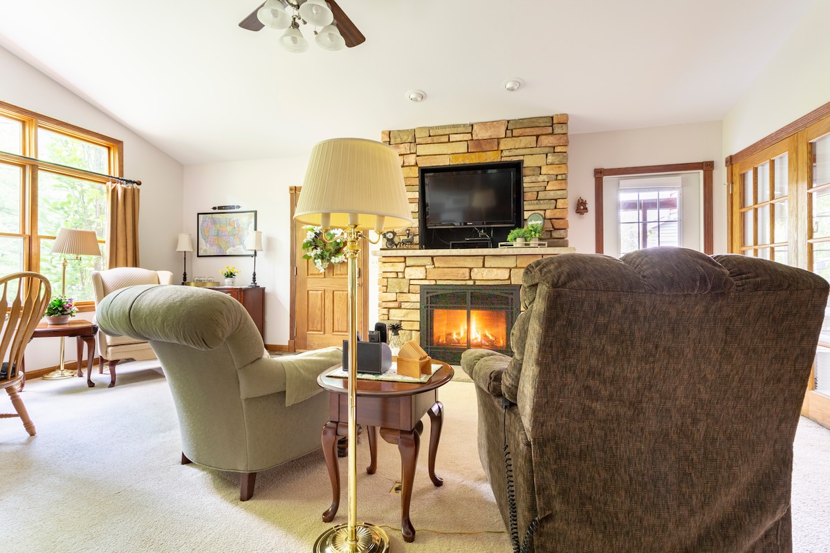 Our house is perfect for a small group of friends or family looking for a clean, accessible place. It contains 2 bedrooms (a queen & twin bunk beds) & 1 full bathroom, as well as a sleeper sofa with a pullout queen bed. Enjoy our smart TVs, grill or warm up by the fire pit, & even get some work or studying done! Located just minutes from 2 major highways, 2 colleges, Four Lakes Ski Resort, & much much more, the journey is just getting started once you arrive!
