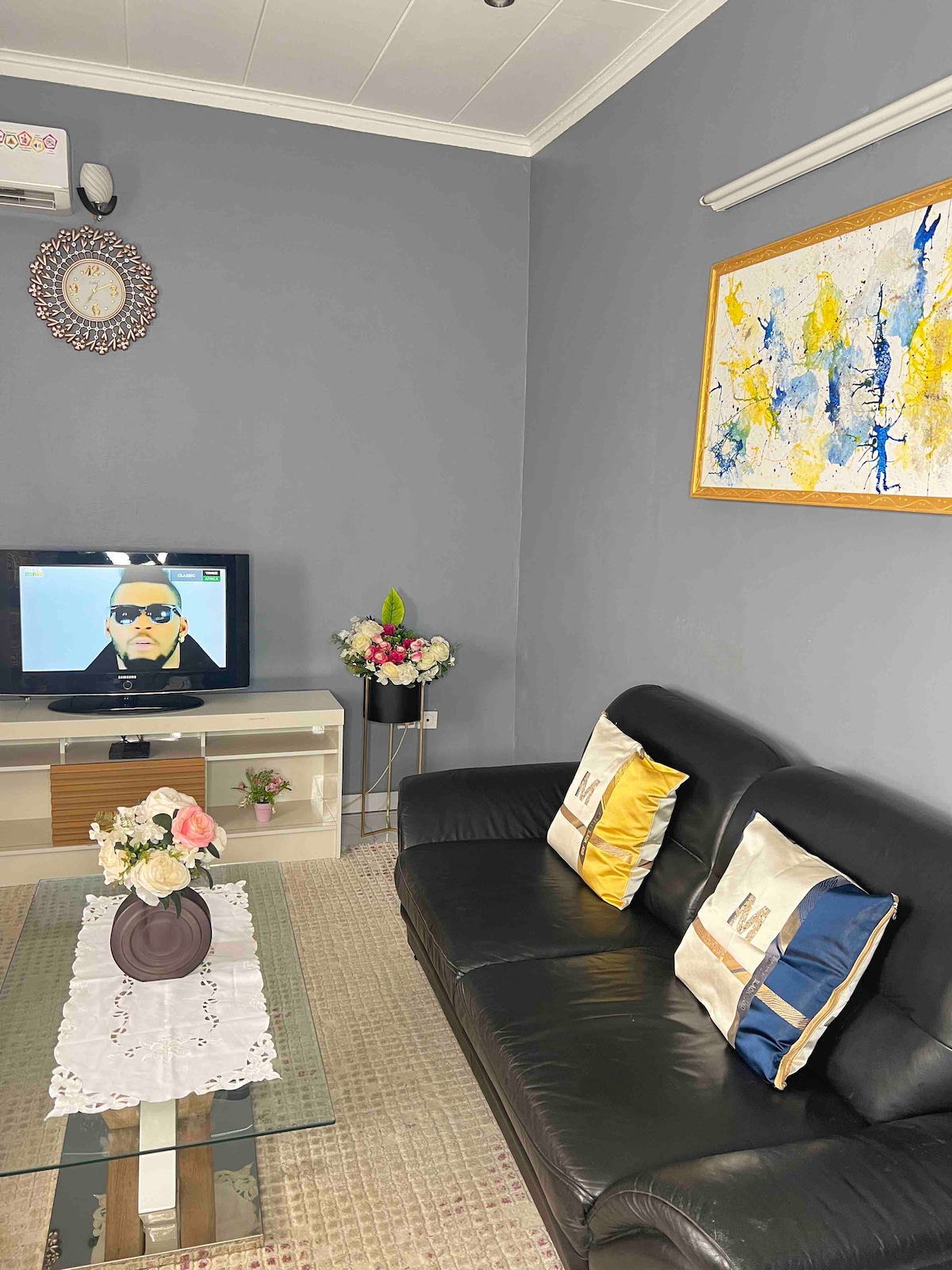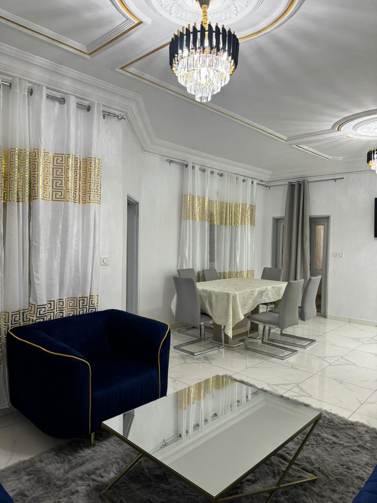 Located in Bonapriso, relax in this new, very functional and authentic accommodation in a hyper-secure residence. You will have at your disposal 2 independent bedrooms, a large living room (living room, dining room, bar, reading corner) and an open and functional kitchen. A concierge, a surface technician (8 a.m. - 4 p.m.) and a security guard provide you with personalized follow-up under my supervision. You have outdoor parking, Wi-Fi (5 GB/day), a smart TV, and a Canal Sat Evasion subscription.