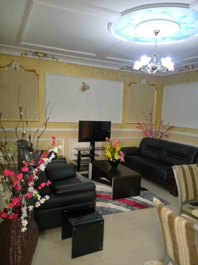 In a quiet area in the center of Bonamoussadi, close to supermarket and shops, in front of the JC restaurant and Snack Opium. The apartments are composed of: 2 Large air-conditioned bedrooms 2 Bathrooms 1 large fully equipped kitchen 1 large air-conditioned living room 1 Balcony Wi-Fi Water heater Drilling Generator Apartment serviced once a day by a housekeeper 24-hour security service Surveillance camera Secure parking Prepaid meter at the expense of the customer