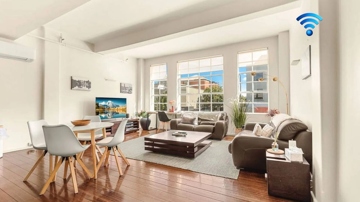 Located in the historic Webb and Co building, ‘Queens Loft’ is a premiere property that has the perfect mix of central CBD location, boutique vibes and comfort. A spacious and comfortable 1 bedroom apartment with all the modem amenities and a focus on being a unique space to unwind, relax and take the city in. It is convenient to everything the Bendigo CBD has to offer, all within a walk to galleries, restaurants, cafes, the cinema, shopping, supermarkets and the Bendigo train station.