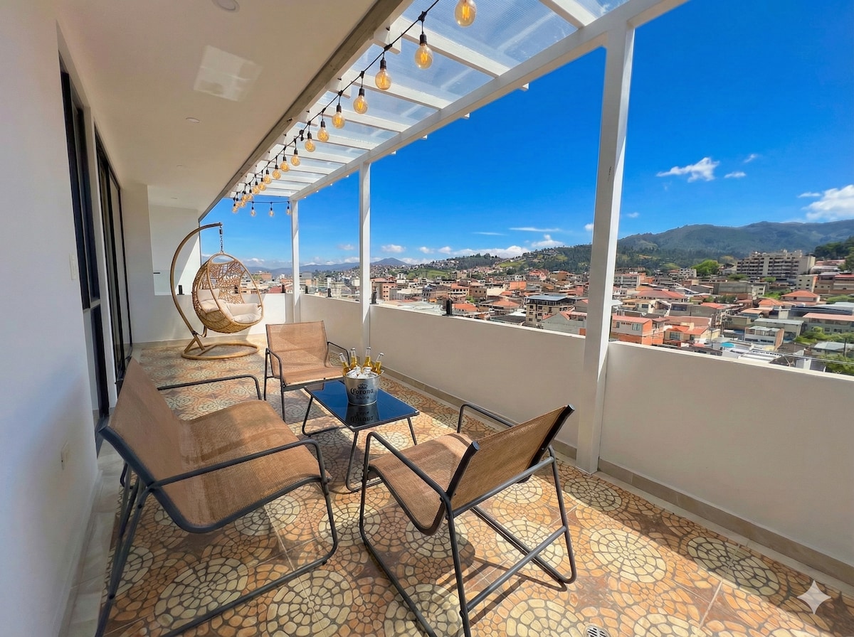 We comply with all biosafety and sanitation regulations. It's the ideal choice for family or couple trips. An excellent choice for accommodation in the city of Loja, the apartment is located 3 blocks from Boulevard 24 de Mayo and 6 blocks from the historic center and business area. With a spectacular view of the city and a terrace-garden where you can contemplate the beautiful landscape and enjoy your peaceful stay. We look forward to meeting you