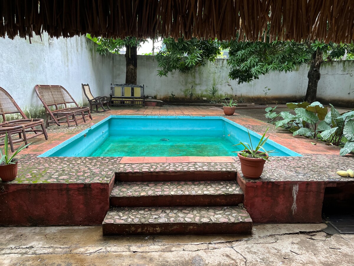 Large house with 2 bedrooms, only one air-conditioned room, 1 with fan. It has a garage for one car, a corridor to enjoy an afternoon of rest. What makes this accommodation special is its large courtyard full of fruit trees, where you can relax under the shade, enjoy the birdsong and taste fresh fruit directly from the tree according to the season. You will find tranquility, comfort and direct contact with nature that not many accommodations can offer