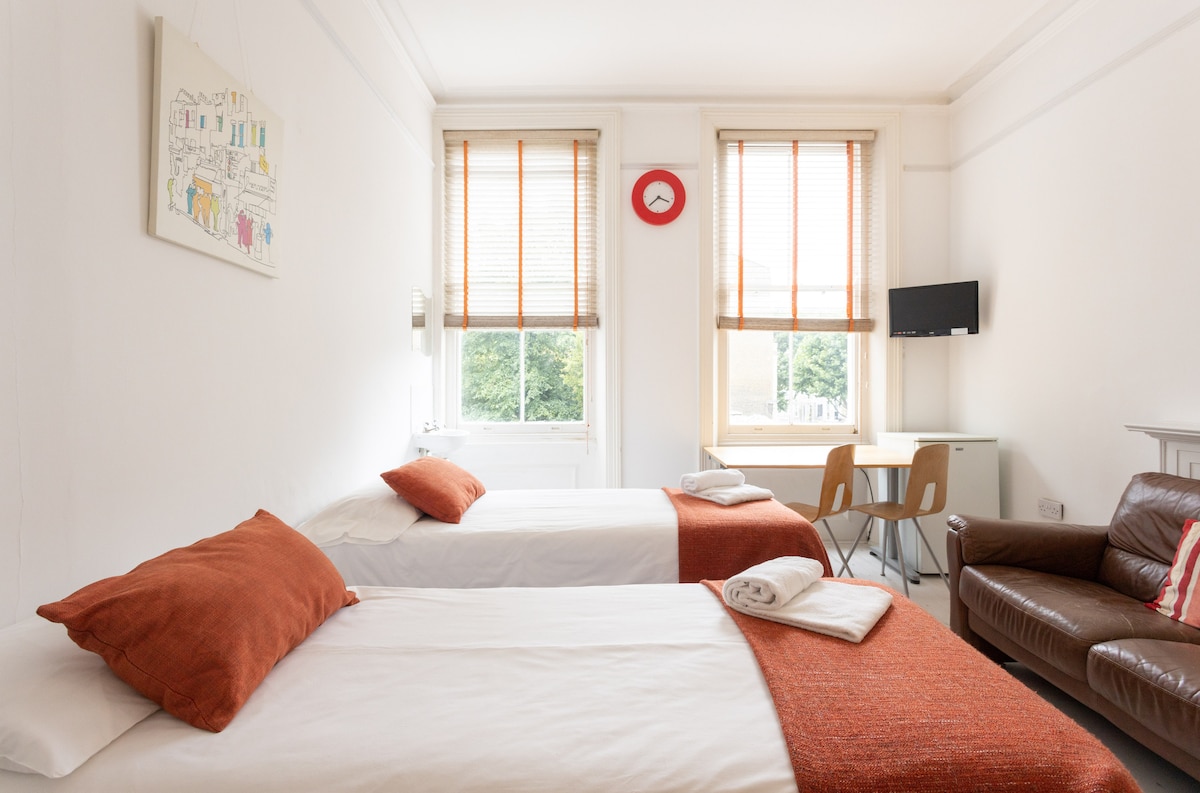 Spacious and warm double/twin bedroom with access to a simple but well-equipped kitchen so you can cook, access to two WC/showers of common use. The hostel is situated in a lively cosmopolitan area popular with many travellers who enjoy the many fabulous restaurants, bars, cafes and late night facilities such as M&S food hall next door. All the museums in South Kensington are just a short walk away. Also close by, Holland Park and Kensington Gardens offering formal garden and open parks.