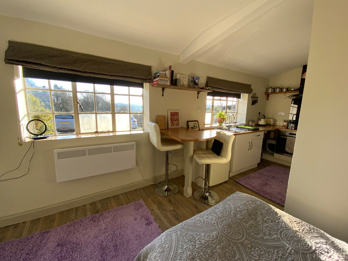 A newly renovated and exclusive studio within a peaceful rural setting, sleeping two guests within easy reach of The Forest of Dean, Gloucester, Cheltenham and the Malvern Hills. Scenic walks and cycle routes surround. All on the ground floor with an open plan living space French doors lead to a private patio and seating area with spectacular uninterrupted views of the Cotswolds as far as the eye can see.