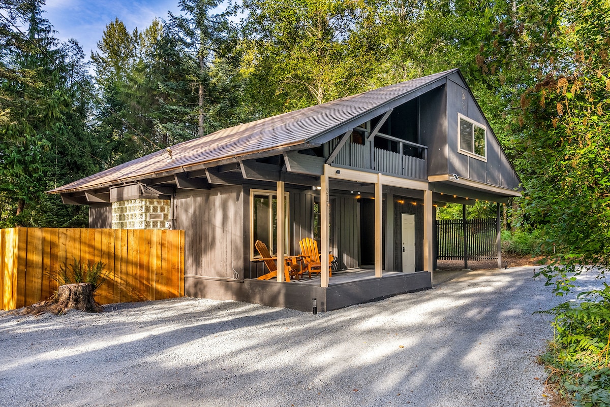Welcome to your Mount Rainier escape ON the Copper Creek! Named after our pup, Ranger our newly renovated tiny home boarders Copper Creek, is just 4 min (2.4 miles) from the entrance of Mount Rainier National Park and a 2 min walk from the famous Copper Creek Restaurant. Basecamp here with a queen bed, kitchenette, gas fireplace, walk-in shower and private hot tub. The perfect micro-cabin to call home after your adventures in the national park.