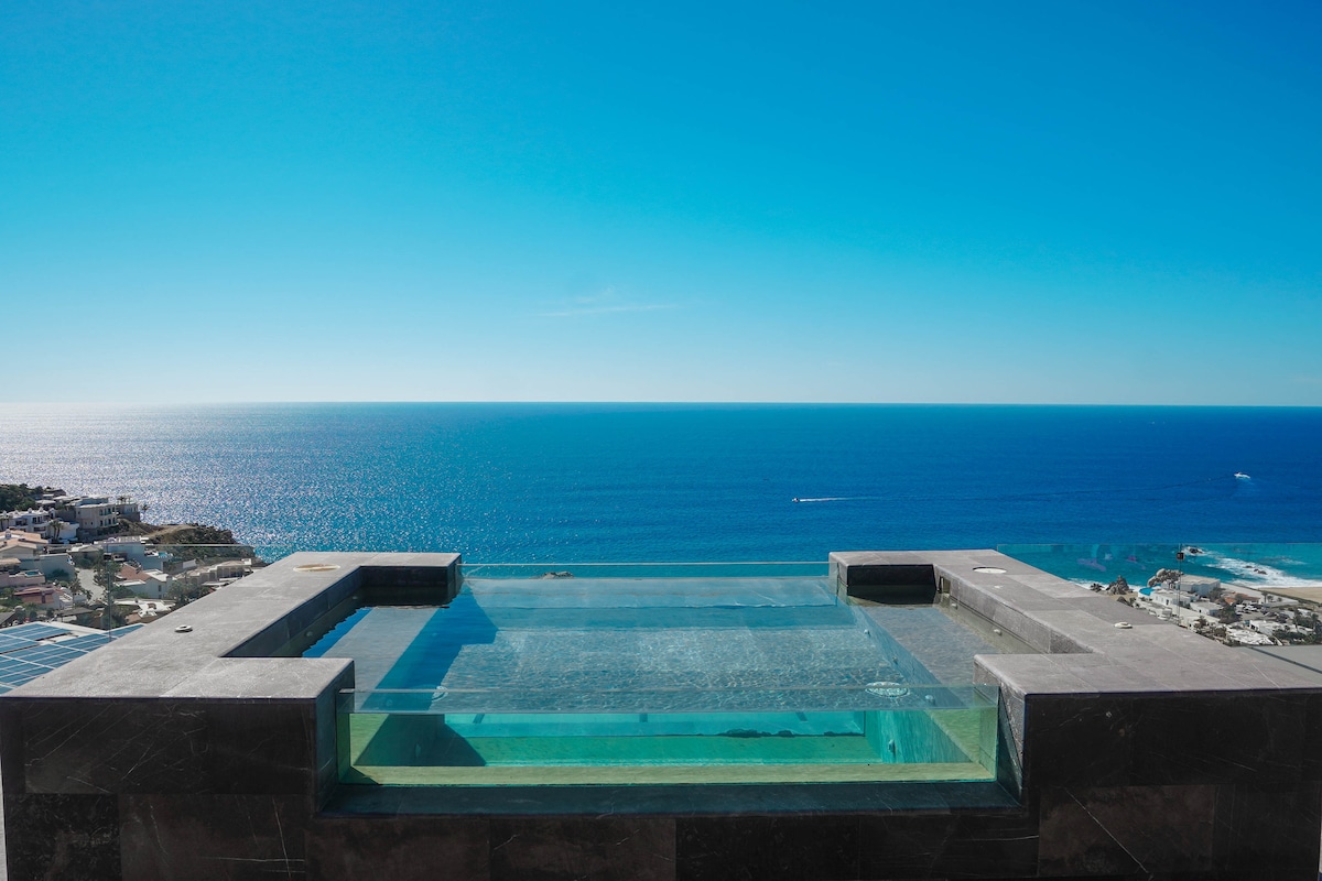 Casa cyan is a multi-level, 4-bedroom, 5.5-bathroom villa located in the Hollywood Hills of Los Cabos, El Pedregal. Entering the home, you immediately get stunning view of the pacific. Located on top of the prestigious gated community of Pedregal, you can expect safety and security throughout your entire stay. This house has amazing views during the day and night, which can be seen from its incredibly spacious outdoor balcony.