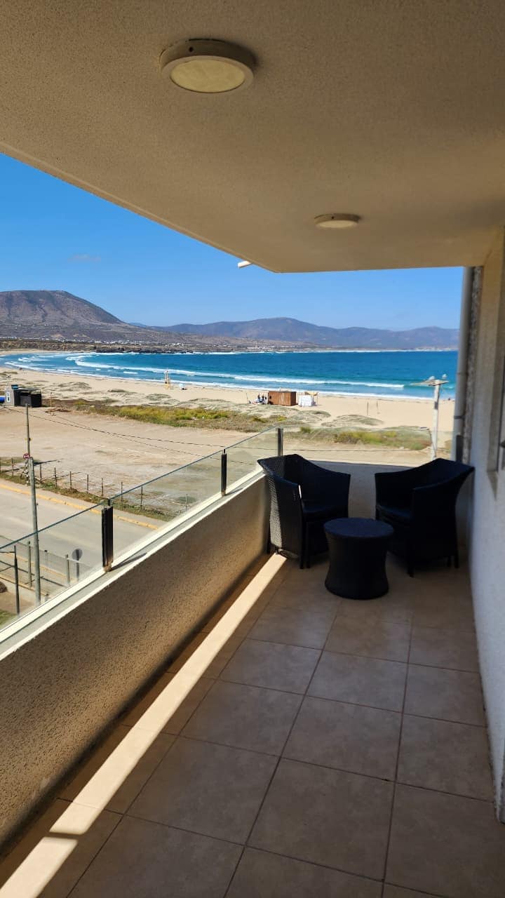 Beautiful, cozy and spacious oceanfront cabin in the best location in Maitencillo (2 hours from Santiago) very well equipped, it can comfortably accommodate up to 9 people, condominium with swimming pool, gazebo and private parking. Terrace overlooking the ocean, living on the terrace and beach in front without having to cross a street! To enjoy the best sunset or pisco sour while watching the children without anyone interrupting!! Family condominium. No parties!! Only rented through Airbnb.