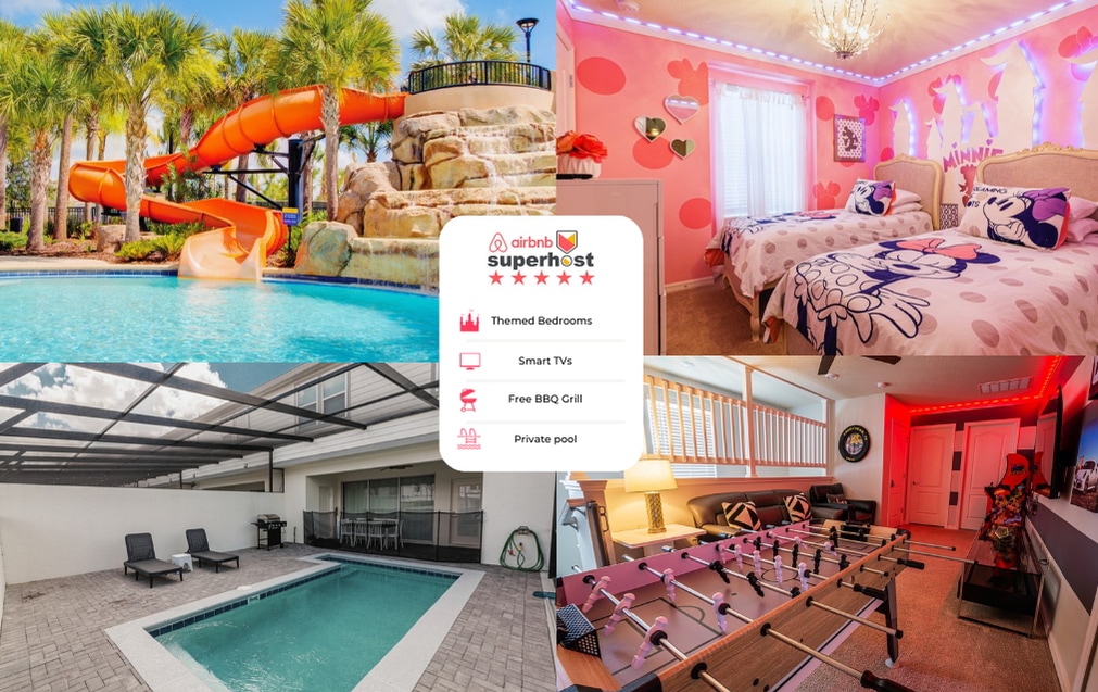 Themed Home + Near Disney + Arcade + King Bed + Water Park + Spa