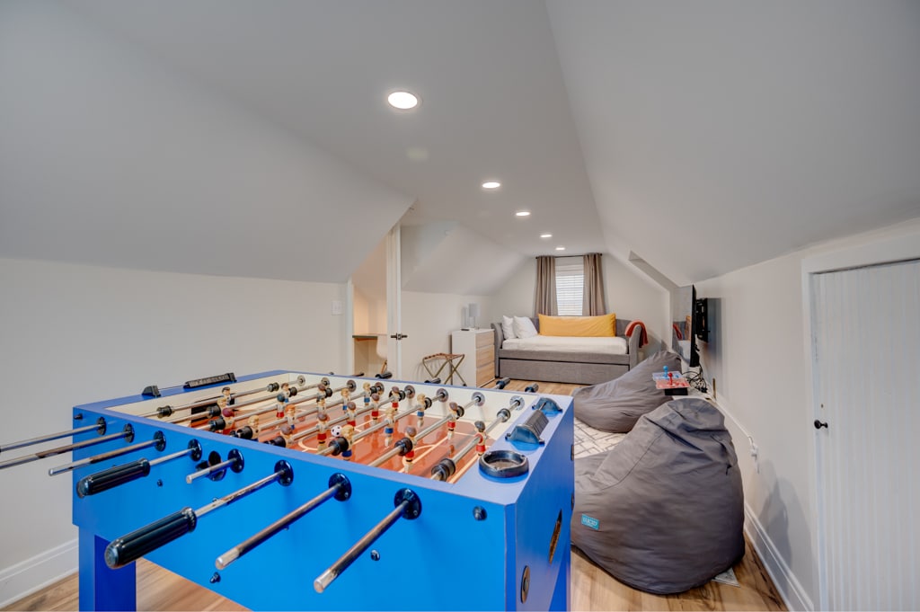 Perfect for large groups, with a MAIN HOUSE consisting of 3 bedrooms, as well as a CARRIAGE HOUSE with 2 bedrooms and an incredible GAME ROOM! Located in Beechmont, close to Churchill Downs, SDF Louisville Airport, Fair & Expo Center, University of Louisville, etc. There are smart TV’s in every room, two fully stocked kitchens, and modern bathrooms. The private courtyard between the houses includes a fire pit, a deck, and a paver patio with a gas grill, great for entertaining.