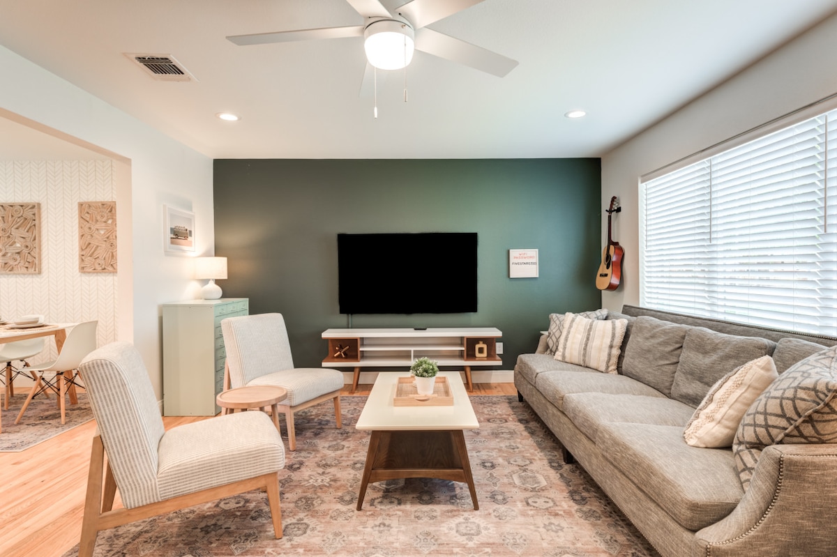 Welcome to this charming 1940’s Bungalow in the heart of Tech Terrace! Book with confidence knowing this home has been curated for guest comfort & relaxation in mind! Enjoy a spacious living area, fully stocked kitchen, record player & 50" RokuTV (Netflix, Hulu, Amazon included). Pet friendly fenced backyard with patio, fire pit, horseshoes, string lights, and artificial turf! We look forward to hosting your stay!