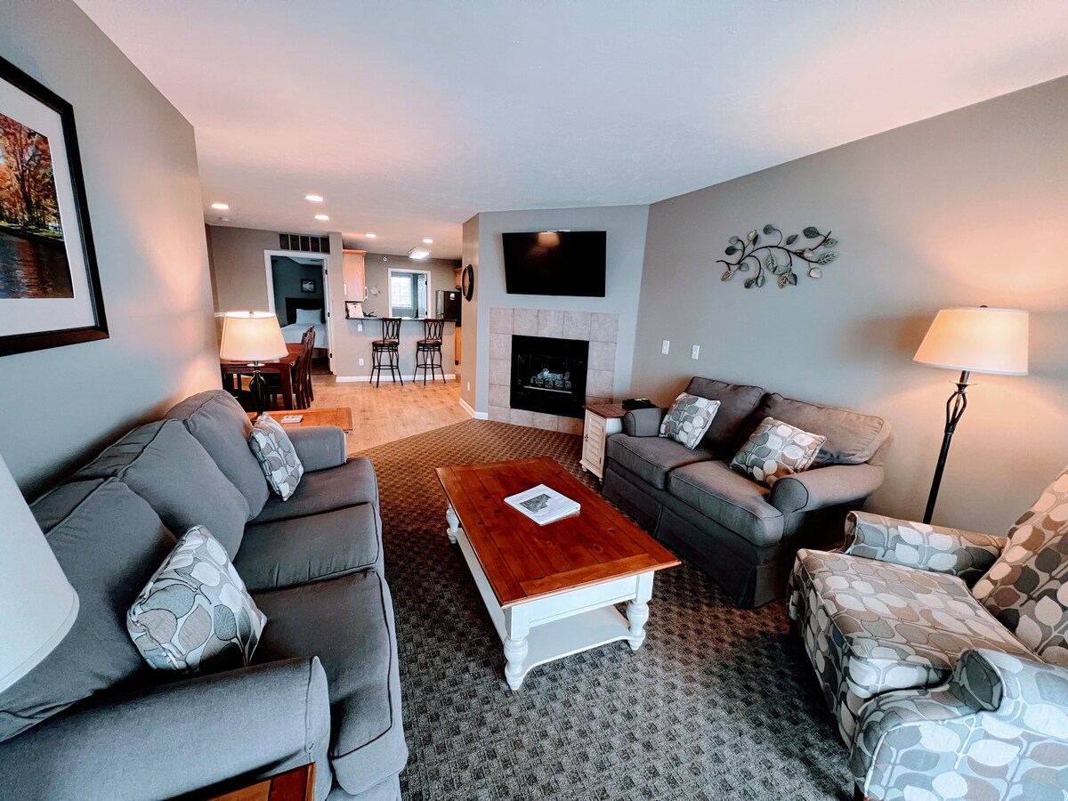 Welcome to our relaxing water view home! You are a short walk from Lake Michigan and nearby hiking trails. Relax inside by the fireplace while doing a puzzle with views of water from all windows. Our community includes access to an indoor pool and hot tub, open 6a-10:30p daily year round, and an outdoor pool in the summer. Two queen bedrooms + extra landing space with full/twin trundle allow for many to sleep. Fully stocked kitchen and laundry.