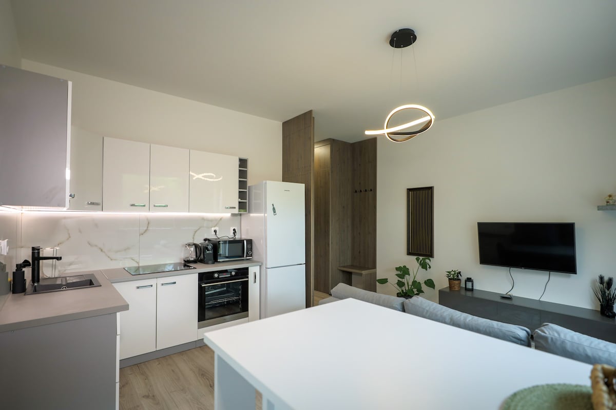 Modern ground-floor apartment in a new building, just steps from the Banská Bystrica train station and a short walk to the historic city centre. Bright and stylishly furnished, it offers comfort and convenience for business or leisure stays. Enjoy a fully equipped kitchen, fast Wi-Fi, and cozy living space. Excellent location with shops, cafés, and attractions nearby. Perfect base to explore the city and surrounding mountains.