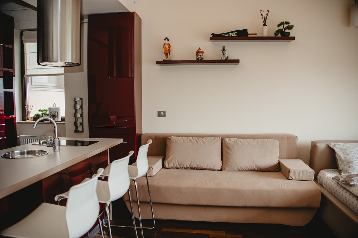 Welcome to our Lower Level Oasis, a cosy retreat nestled in the heart of the city. Place located at lower ground floor on Bisericii Ortodoxe street, 400 meters from Unirii Square so very close to all main points of interest. Apartment is small, , but well equipped and we hope that you like the result. And for the coffee lovers we managed to do little something, perfect to start your day in the right note. Also Google Next and small video projector installed next to bed! Hope u will enjoy!