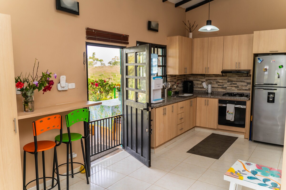 Enjoy the tranquility and charm of this cozy apartment in Circasia, Quindío, with a colonial style in guadua, wood and exposed brick, offering a warm atmosphere that invites rest and disconnection. Just 4 blocks from the main park and 12 minutes from the north of Armenia, it is the perfect spot to relax and explore the Coffee Region such as Salento, the Cocora Valley, Filandia and the Coffee Park.