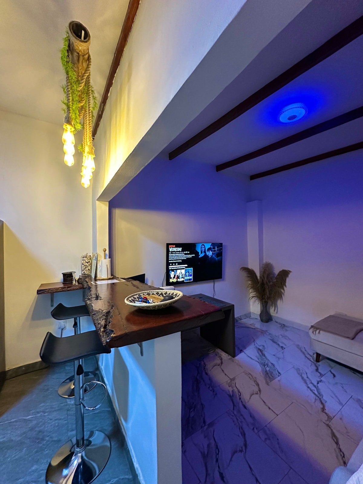 Modern, private, and perfectly located! Enjoy an LG Dual Inverter AC, LG OLED Evo AI 55" TV (2025 model) with prime video. Netflix, YouTube etc. Starlink WiFi. 2m orthopedic hybrid bed, 24/7 power, hot water, a solar iron, and a full kitchen with gas stove, double-door fridge, bar stools, and cocktail glasses. Relax in a cozy living room with a ceiling speaker, workspace, and beautiful couch. Just 5–10 minutes from six malls. You’ll love it here. Book now!