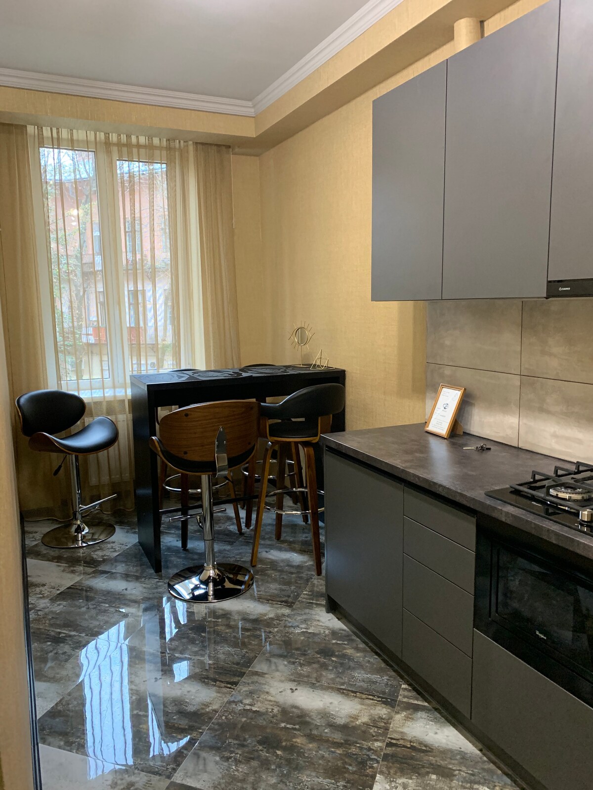 The apartment is located on the 5th floor of the premium class "Forum" residential complex in the historical part of the city. Equipped with everything you need for a comfortable stay. Modern design - comfortable and stylish. Spacious underground parking, elevator, security, video surveillance - you and your and property will be safe 24/7. Across the street there is a shopping mall "Forum" - entertainment, restaurants and shopping. Downtown and the famous Opera Theatre are in a 10-minutes walk.