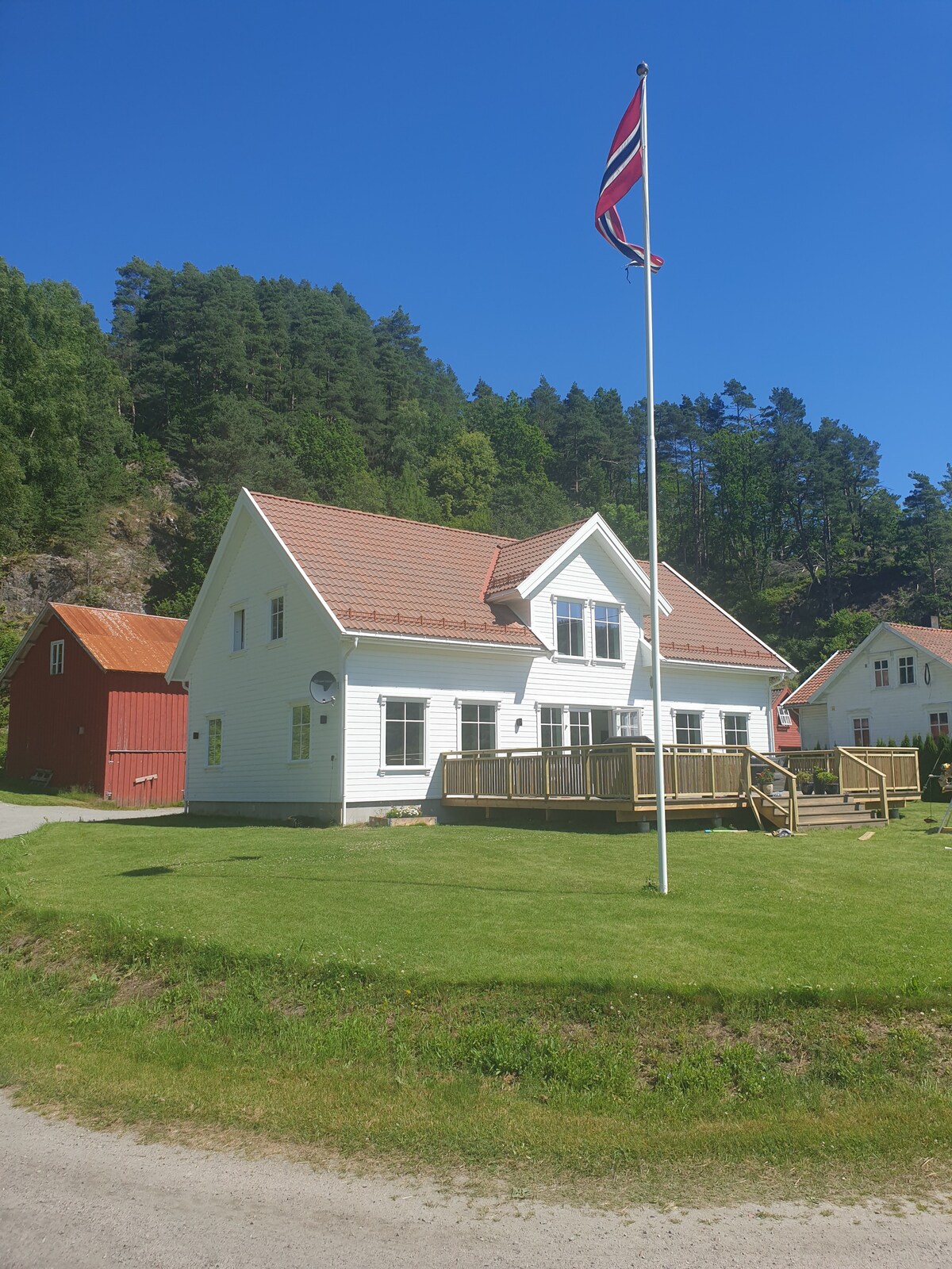 Forget your worries in this spacious and rural place Exclusive house with high standard in quiet surroundings Great views of the river Kvina and the waterfall, Rafossen In the river Kvina there is good salmon fishing The season is from June 1 to August 31 Great Sørland's hiking area right outside the door, with many great marked hiking trails The place is 5 km from the city center of Kvinesdal, Liknes. Where you will find Kvinabadet, shops, opportunities for renting kayaks, RC track Knaben is about 45 km away. With beautiful mountain areas.