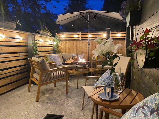 This private, open plan suite was created from my former yoga studio within our family home, reusing and repurposing materials wherever possible. Warm reclaimed hardwood floors leads to a deck at the edge of the Princess Park forest, with a salmon creek running to the west. Wildlife often passes through — raccoons, owls, and occasionally even a bear. Some of the North Shore’s best mountain biking is just a block away. A quiet, unique retreat designed for rest, privacy, and nature.