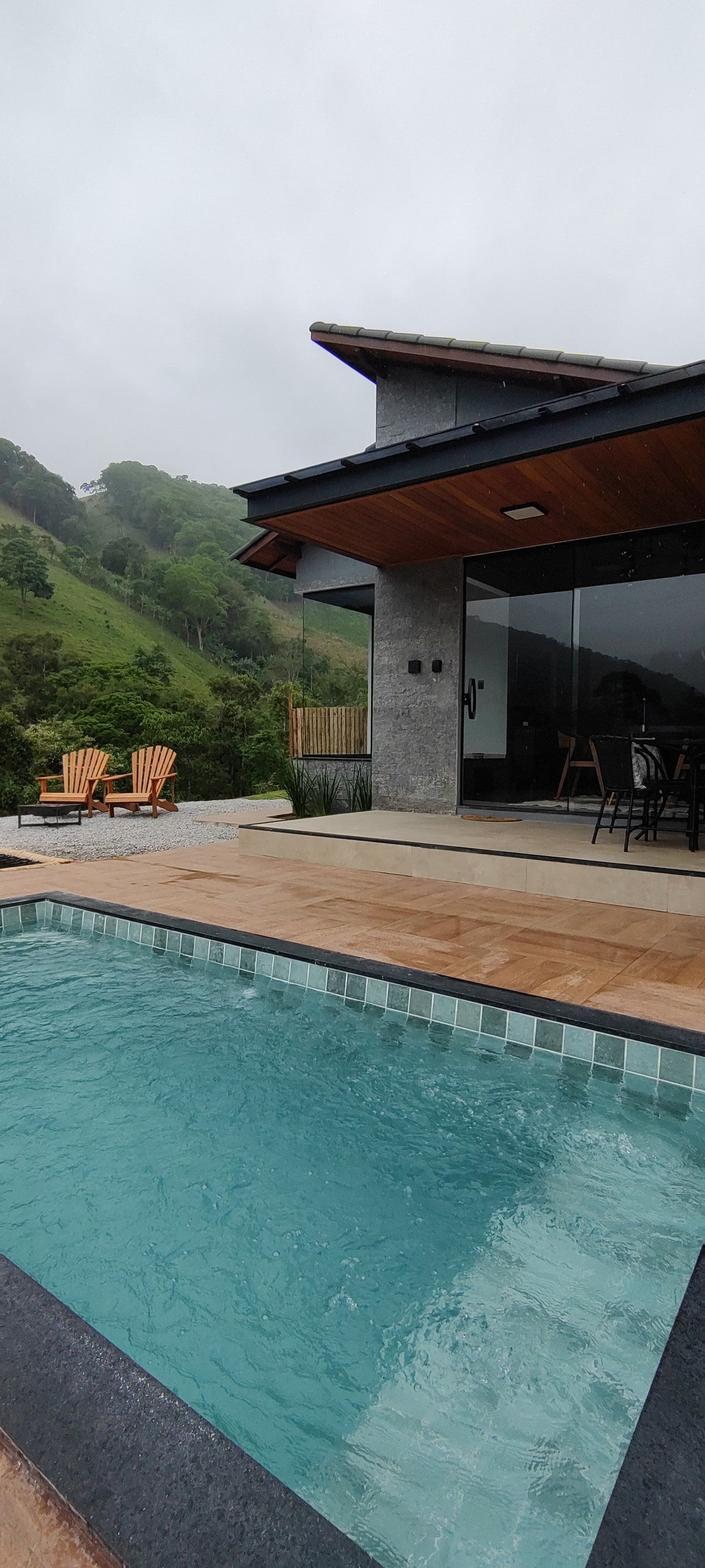 Rustic and cozy house with ample outdoor space with pool, ideal for you to enjoy with family and group of friends. The house is surrounded by mountains and offers a beautiful view of the sunrise. Located right next to the river bordering the condo, it has easy access to a bath point with clear water (except in case of heavy rain) and a small natural “beach” in the riverbed, great for relaxing.
