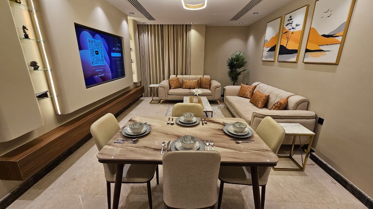 A modern apartment with the latest designs and the best amenities. We care very much about the customer in terms of hygiene and daily sterilization, professional customer service (we are proud of our customers' high high rating) It contains: A king size bed and a comfortable single bed. Kitchen - Microwave - Refrigerator - Kettle - Washing Machine Toilet. A neat design and a comfortable space. 250 Mbps Internet Self check-in Parking Vital location close to restaurants, malls The Prophet's Mosque🕌: 5-7 minutes🚗 Airport✈️: 11 minutes 🚗 Haramain Train🚆:7 minutes 🚗 24/7 service for a perfect and quiet stay.