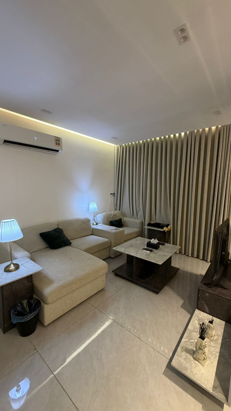 This elegant home is perfect for group trips. The apartment is luxuriously furnished, very spacious and new, with a bedroom, a large hall and two bathrooms. It is located in one of the most prestigious neighborhoods of Al Madinah Al Munawwarah and Al Aqeeq Walk