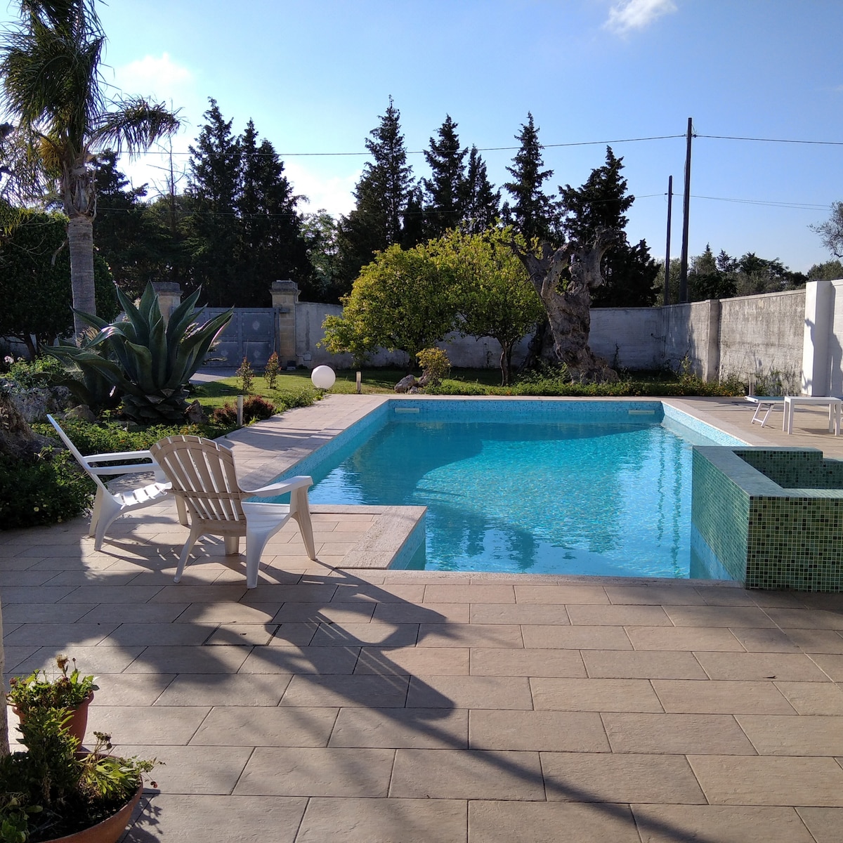 Treat yourself to a truly relaxing vacation at 🌲Villa Brada🌲, a rural single-family villa, surrounded by a pine forest, at your complete disposal. The Villa is halfway between the heavenly beaches of Porto Cesareo/Punta Prosciutto and the Baroque capital of Lecce. You can organize a barbecue in the evening, or swing in the hammock when you return from the sea; or relax in the hot tub on the panoramic terrace overlooking the Negroamaro vineyards, with a glass of wine and a Salento frisa.