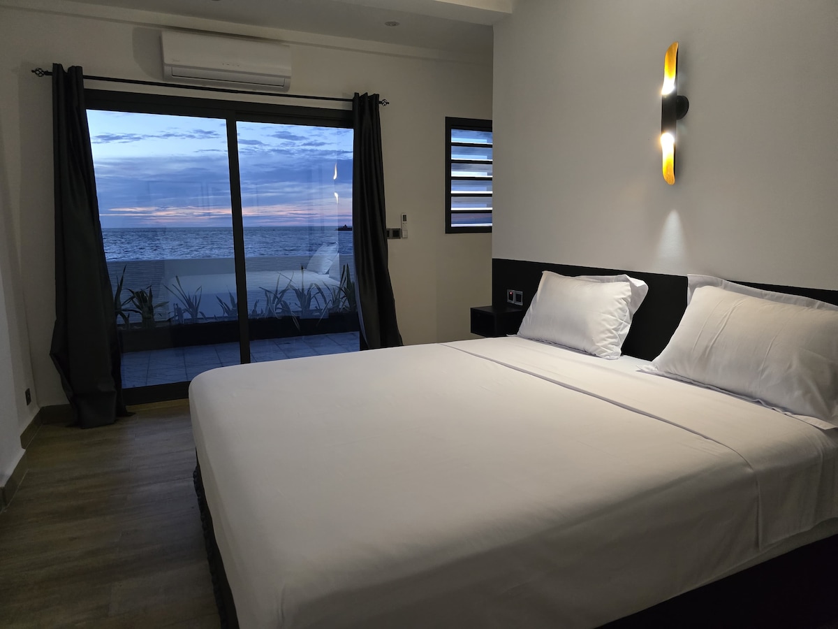 Low-rise beach villa with roof terrace located on the peninsula that touches Majunga. The villa is located on an estate with other accommodations. The private pool is exclusively for your accommodation, some sports and relaxation facilities are shared Access to the city (in a few minutes) is by crossing a mangrove arm by boat, free during the day. The place is very quiet and secure. Relaxation and unwinding guaranteed! very high speed wifi (fiber optic) and satellite TV