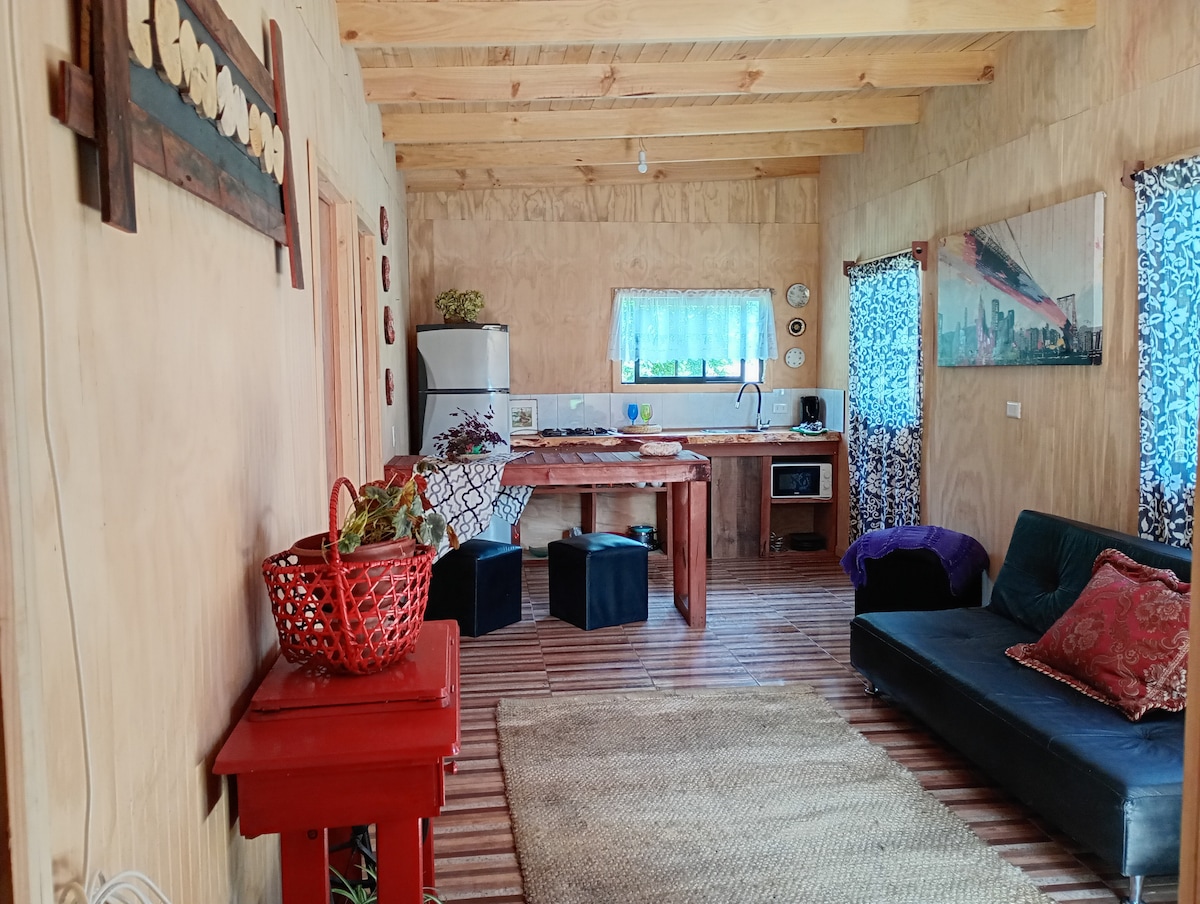 Acogedora Tiny house en medio de bosque nativo de hualles y arrayanes. Cercana a atractivos turísticos como el Salto del Nilahue, Playa el Arenal, Playa Epulafquen, Riñinahue y Calcurrupe.