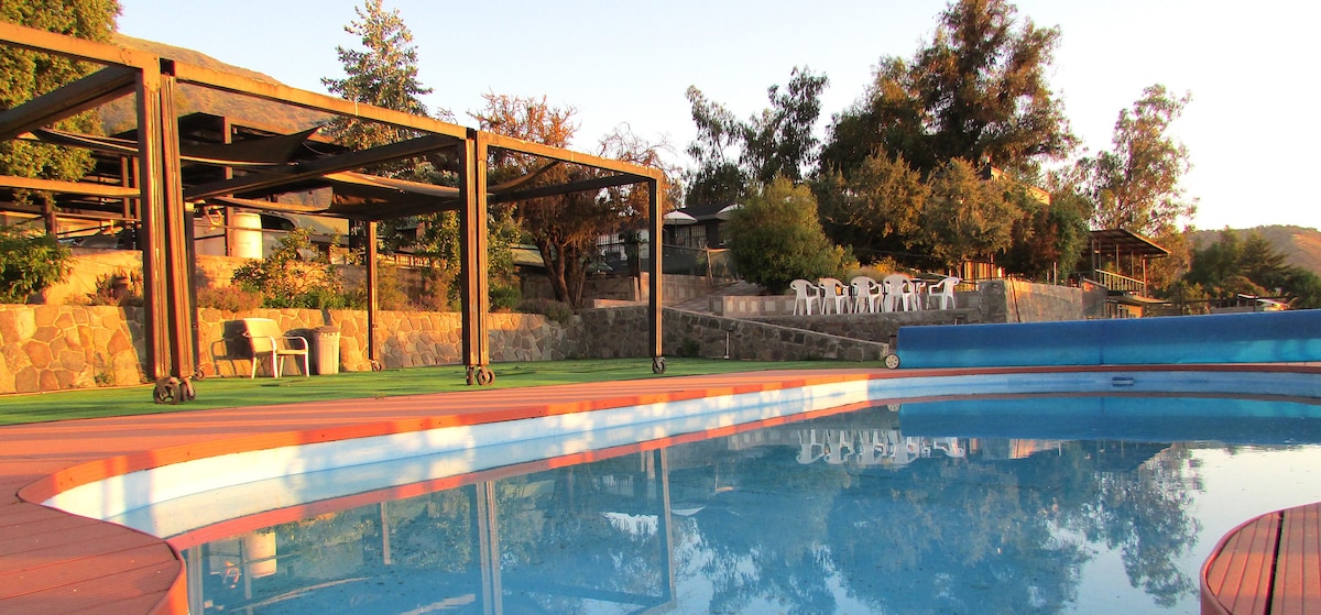 If you want accommodation on the wine route of Maipo Valley, Chile, this location is ideal, private cabin in a family house located on a farm of 5,000 square meters, access to the services you require, laundry, pool and gardens. Preparation of roasts and typical meals, upon request. Located in the village of Alto Jahuel, 38 kms. south of downtown Santiago, mobilization at the door of the condominium. Easy access to vineyards in the sector, even some can be reached by foot.