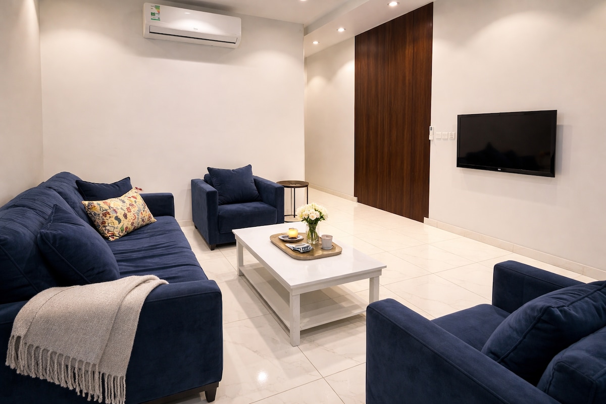 Live the peak of luxury in an elegant duplex loft in Al Rawdah, Jeddah — designed with a modern, sophisticated touch that offers complete comfort and privacy. Relax in your private jacuzzi and enjoy a cinematic experience on an 85-inch QLED TV. Perfectly located near Hamad Al Jasser Street, close to the city’s best cafés and restaurants. Includes private parking, free cleaning on request, and a professional team ensuring a seamless stay. Luxury Stay — where elegance meets comfort.