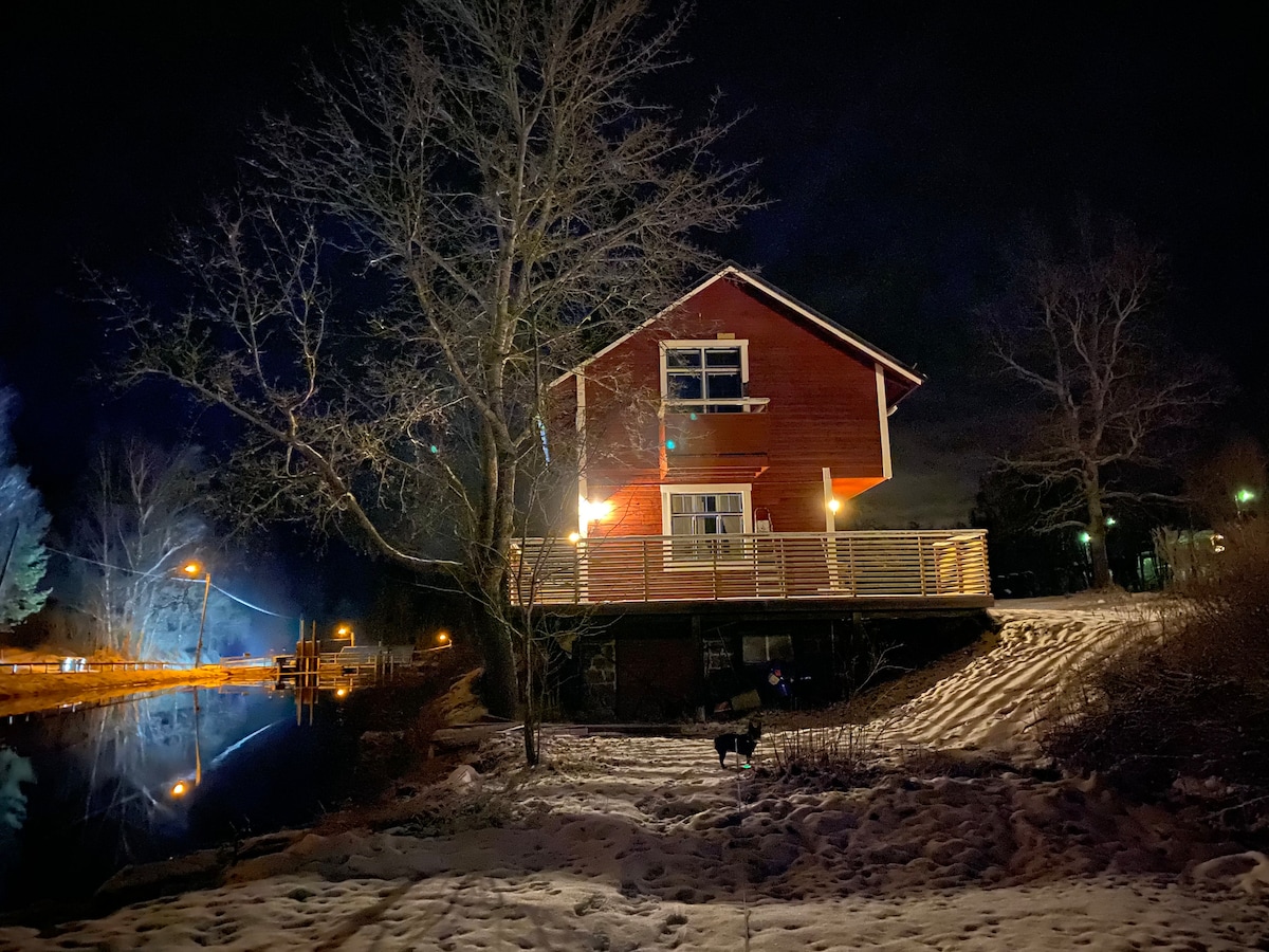 2 rooms and A kitchen in its own part of lake villa with jetty below the property. Brand new with full furniture for 4 ppl. Double bed, sofa bed (140 cm), Fully equipped kitchen with fridge/freezer, dishwasher and hob/oven. Smart TV with sound bar for access to all streaming services (wifi included). Large walk in closet and brand new bathroom with washing machine. Quiet residential area with walking distance to beach (1 min), city center (15 min) long distance skating rink/cross-country skiing tracks (10 min) and illuminated tracks (10 min). 20 min by car to Romme alpine,