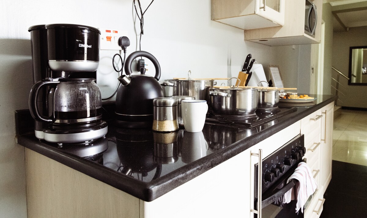 Have fun with the whole family at this stylish home that offers 4 bedrooms and 3.5 baths. It has a very spacious and modern fully fitted kitchen that includes a coffee maker and an instant pot. Each room is air-conditioned and the house is secured by an electric fence and a panic button. WiFi and backup power are available. The house is located 3km from Gateway Mall and within a 2min walk of a local grocery store for all your essentials.