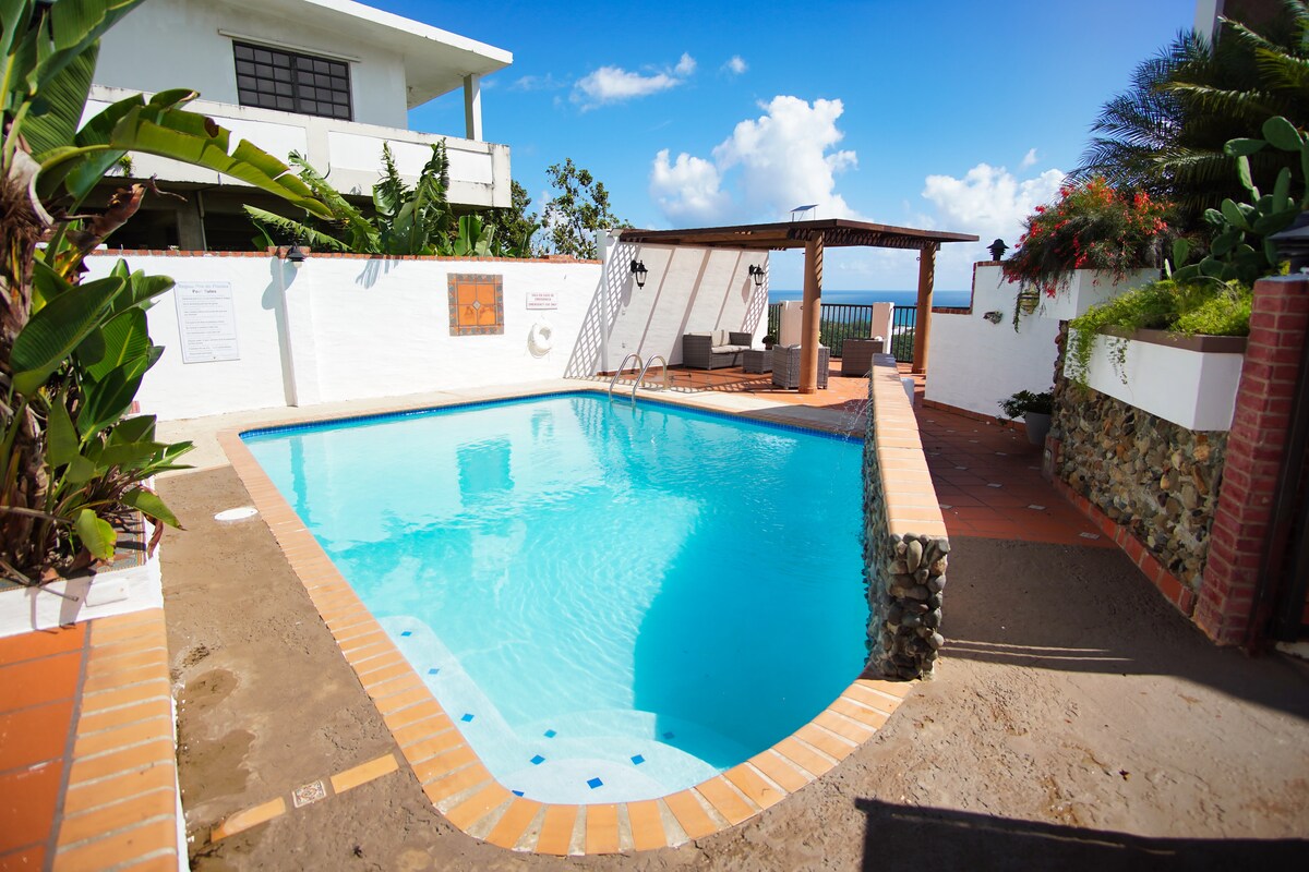 Enjoy a beautiful view of the Atlantic Ocean in a relaxing and peaceful place with swimming pool. Where you will have 3min to the Wyndham Rio Mar Hotel and Casino, 15min to the Hotel Melia, 5min to several restaurants where you can taste Puertorican and international meals, 10min to The Yunque National Rain Forest, 15min to beautiful beaches, 40min to P.R International Airport, 20min to The Outlet 66 Mall, 30min to the Vieques and Culebra Islands Ferry, 15min to Pharmacies and Super Markets.