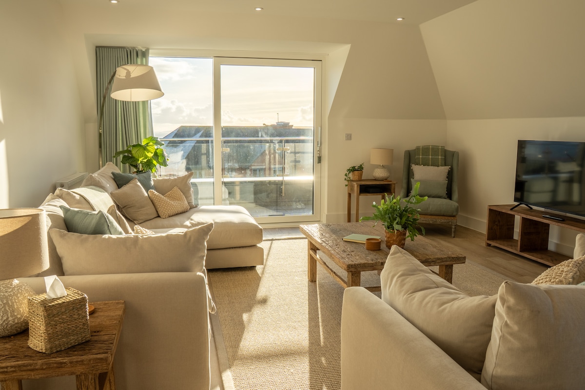 The Garden Cottage is a beautifully appointed two-bedroom apartment in The Lincombes, Torquay’s most prestigious neighbourhood, renowned for its breathtaking views, picturesque gardens, and grand Victorian Italianate residences. Just minutes from Torquay’s marina, it offers a private street entrance & unrestricted parking, plus an on-site Tesla charging point. At the front, is a sunny decked courtyard area. The idyllic Meadfoot Beach—a local favourite—is just a scenic 10-minute stroll away.