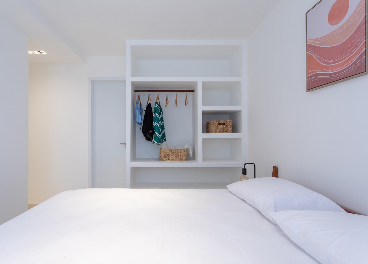Near the Bakery, Pharmacy, etc. The apartment offers in the room: 1 new Split air-conditioning, 1 Smart TV, 1 Queen-sized bed, 1 single bed, 1 clothesline, 1 iron, bathroom; hairdryer, living room/kitchen 1 smart TV, 1 sofa bed, 1 minibar, 1 microwave, 1 water cooler, 1 2-burner electric stove, 1 coffee maker, 1 dining table, 1 new Split air-conditioning, all the utensils for you to prepare your meal, no balcony with sea view, 3rd floor.
