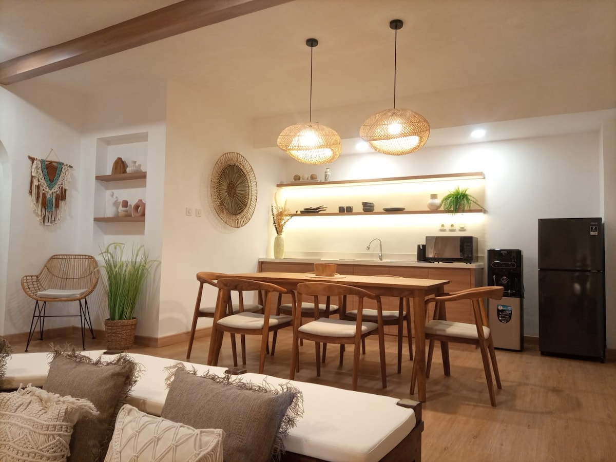 A 2 bedroom apartment located on the edge of the beach and newly renovated, equipped with various facilities such as full kitchen, 2 bedrooms with comfortable beds, dining room, living room, air conditioning. In addition to the complete amenities that will support your stay, you will also be pampered with a great view to the Beach and the mountain from your bedroom.