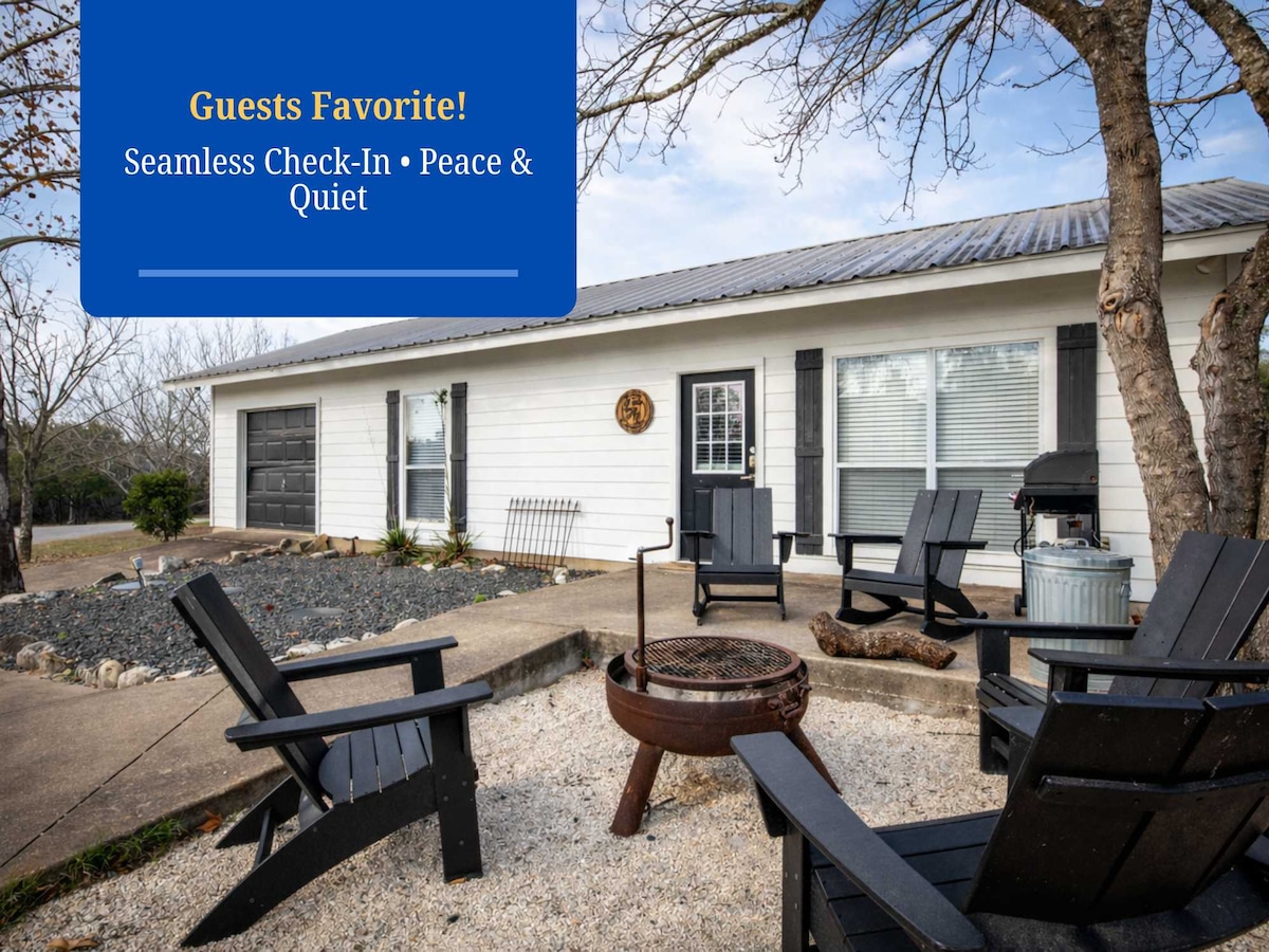 Escape to Bear Creek Cottage in Manchaca, Texas! Our beautifully decorated vacation rental is perfect for families, friends or couples. Enjoy the spacious backyard shaded by oak trees, where you can relax on the covered porch and watch wildlife. Located just 12 miles from Austin, you can explore the Hill Country and nearby restaurants in South Austin and Buda. Experience a joyful retreat that promises both relaxation and adventure. We can't wait to welcome you to your home away from home!