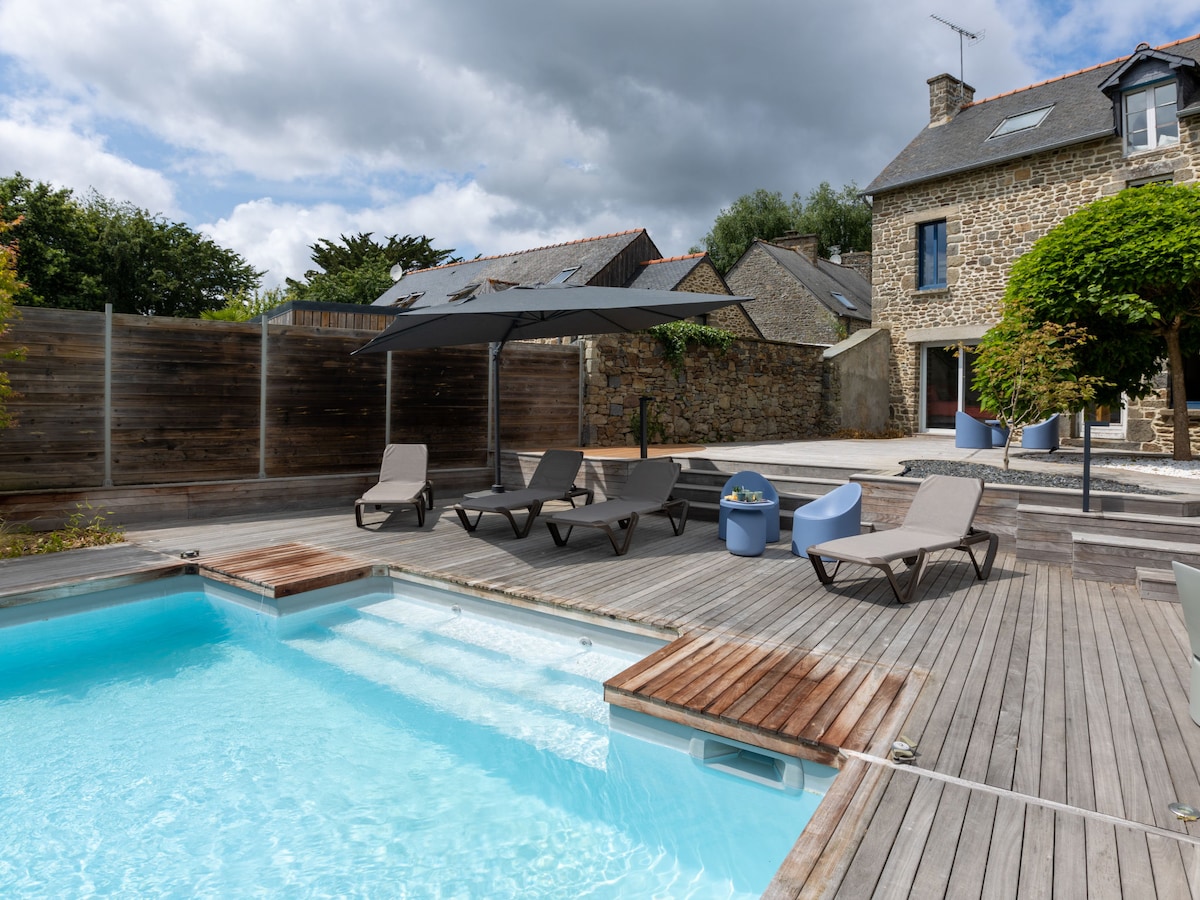 We are the first house (or the last depending on where you arrive from) in a small very quiet hamlet between Dinan (20 minutes away) and Saint Malo (15 minutes away). The cottage is a completely independent studio on our property. It is accessible by a staircase and is not overlooked. It has a private garden, also not overlooked, with table and chairs, umbrella, coffee table and deckchairs, barbecue... The pool, heated to 28 degrees is only open in summer, from June 26 to September 6.