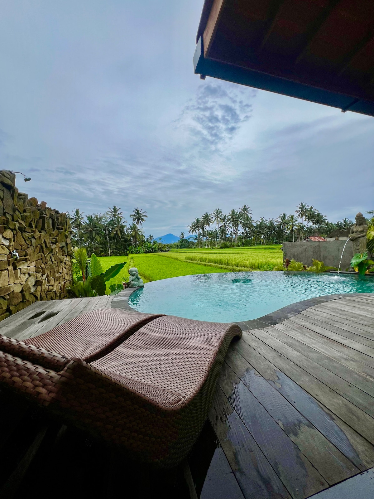 Brand New Wooden Cozy beautiful villa with amazing view at rice field nestled in the heart of lush rice fields of Ubud. Offers you an unforgettable vacation & stay, surrounded by a soothing green expanse and breath-rice paddy views. You'll be welcomed by a calm and green atmosphere of ubud rice field. Spacious room and directly overlooking the rice fields, allowing you to enjoy the beauty of nature from the comfort of home. Elegant wooden decor and natural feel create a warm & cozy atmosphere.