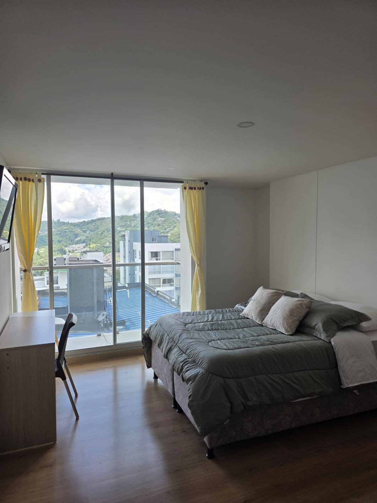 Disfruta una estadía cómoda y tranquila en este apartamento nuevo y moderno, ubicado en una zona central de Manizales, cerca de todo y a pocos pasos de la Universidad Autónoma. Su diseño contemporáneo, los espacios iluminados, una vista hermosa y una cocina equipada, lo convierte en el lugar perfecto para viajes de estudio, trabajo o descanso. Cerca de todas las comodidades, Universidad, Avenida Santander y centro. !Una estadía practica, comoda y con estilo! No hay parqueadero de Carro.